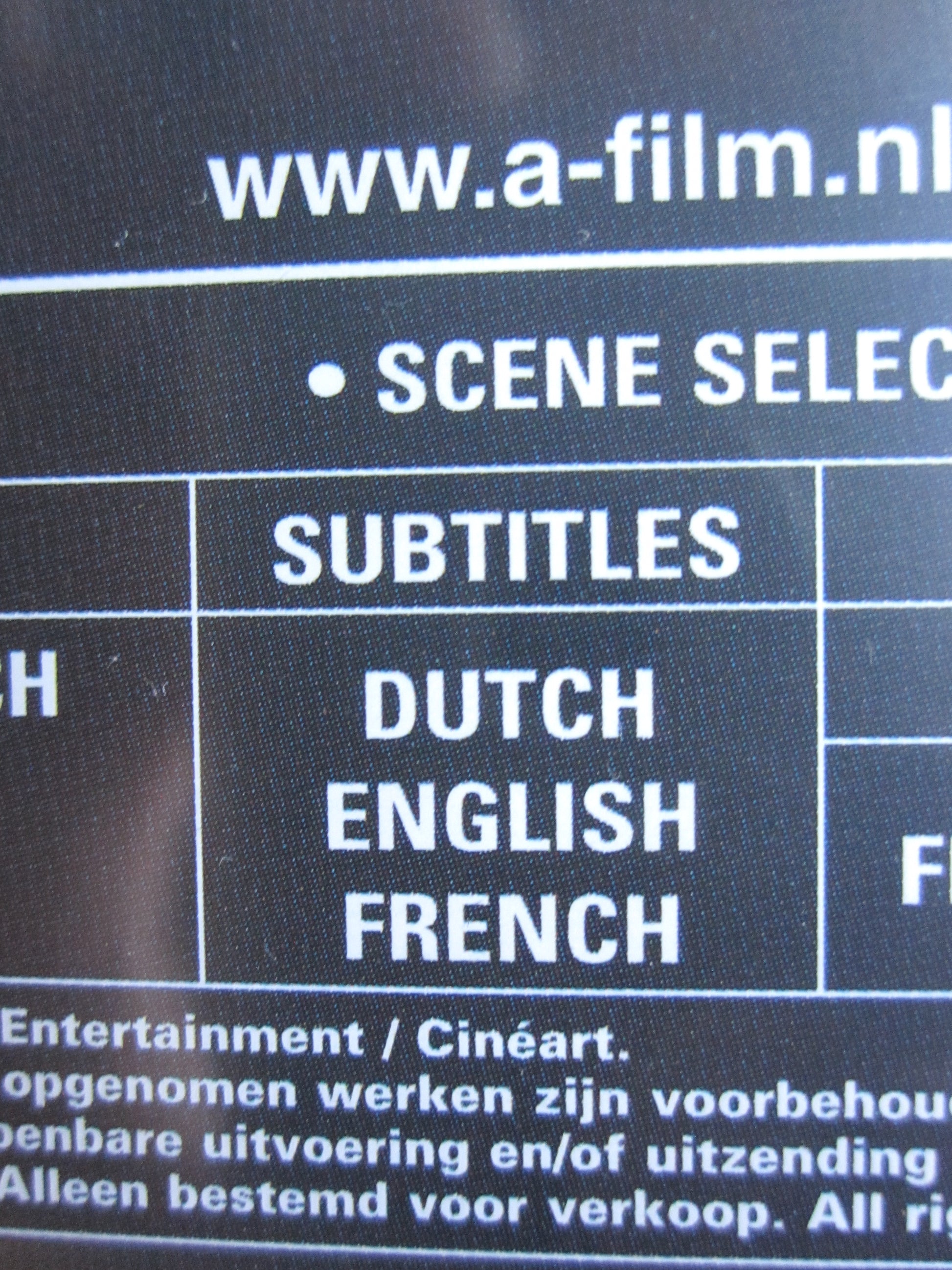Taal ondertitels: Engels, Frans, Nederlands