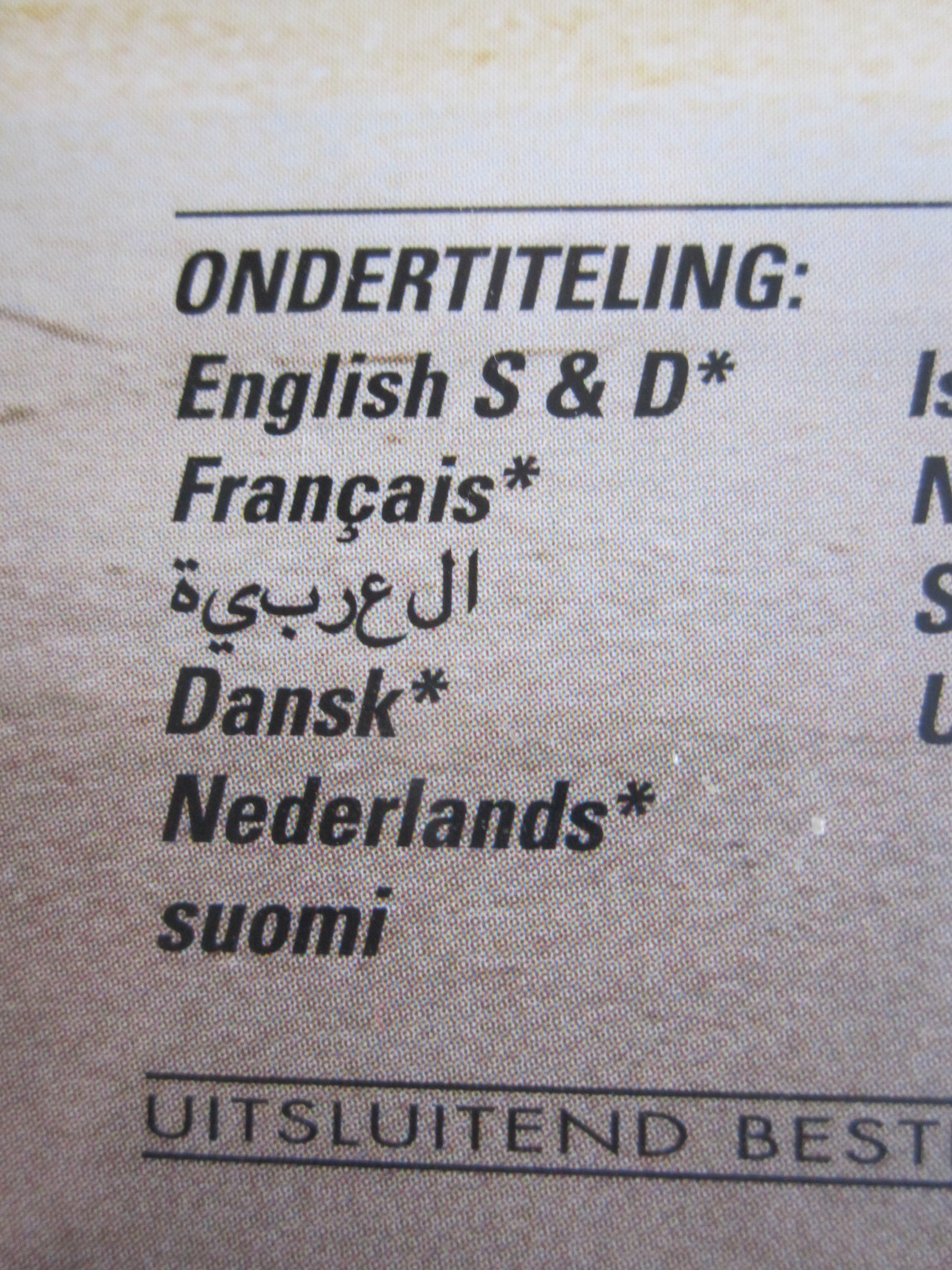 Taal ondertitels: Nederlands, Arabisch, Deens, Engels, Frans, IJslands, Noors, Oekraïens, Zweeds